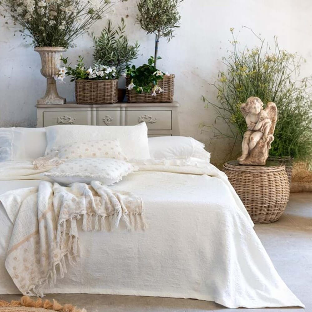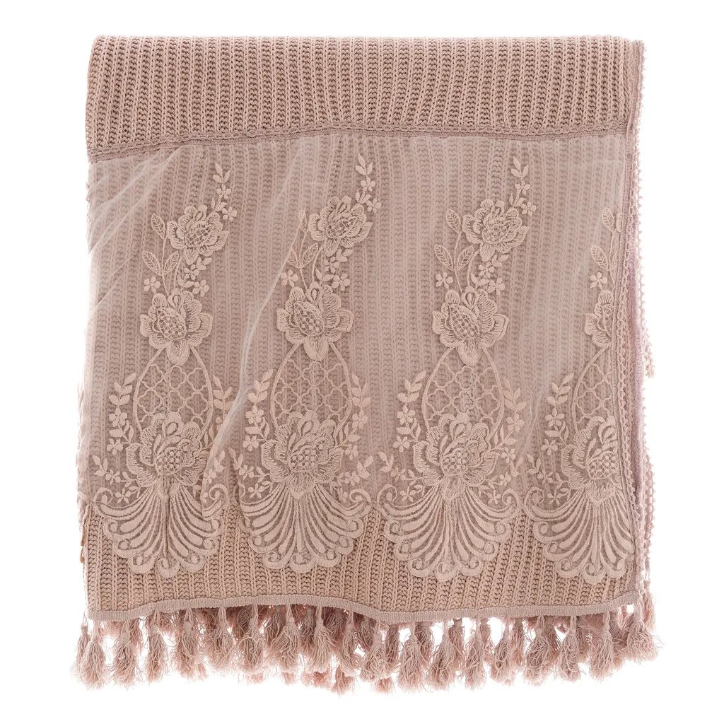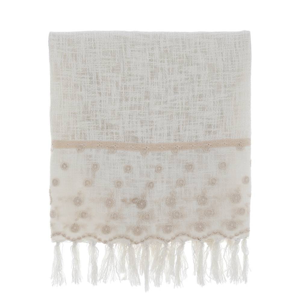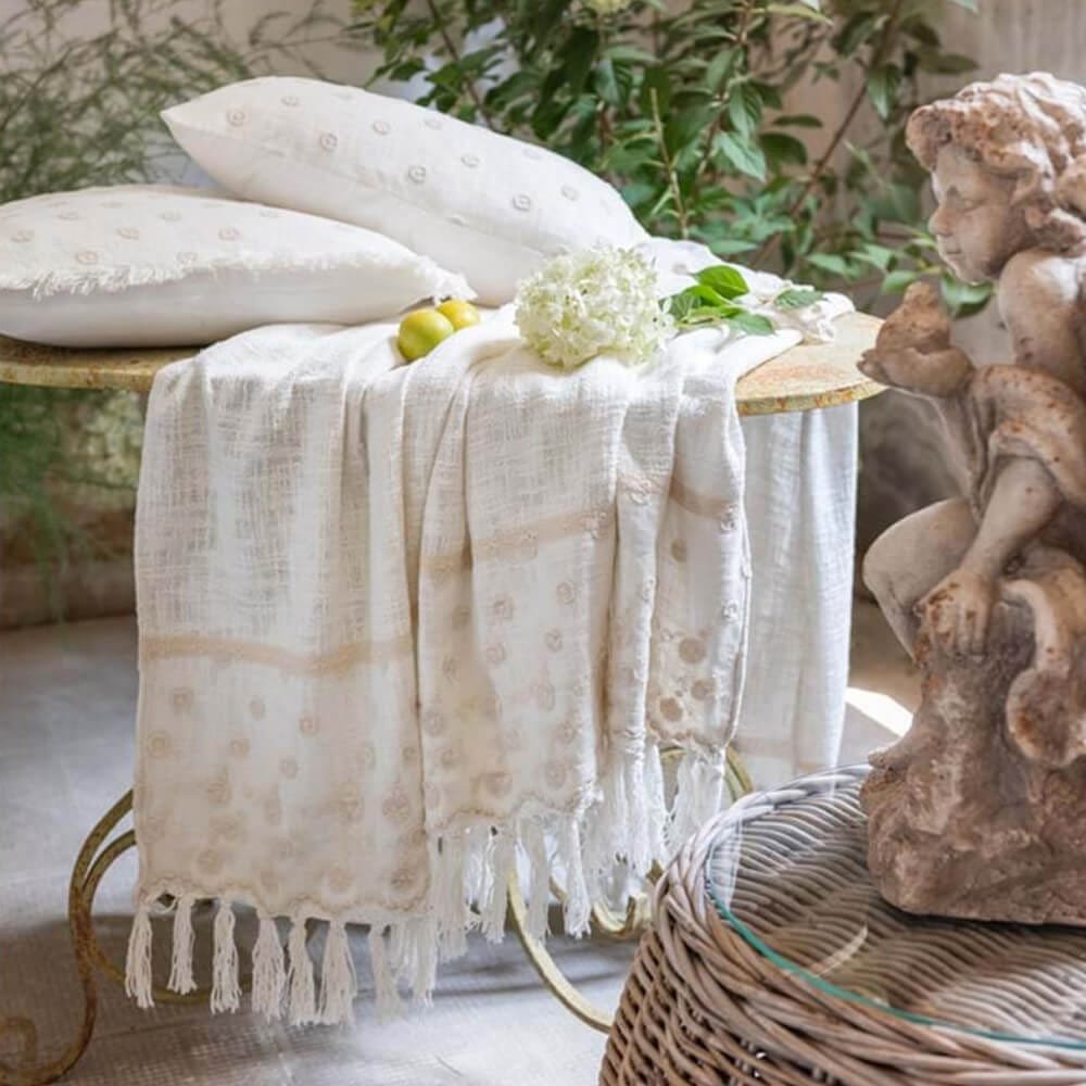 Blanc Mariclò Copritutto avorio coll. Dentelle con Pizzo e frange 130×170 cm