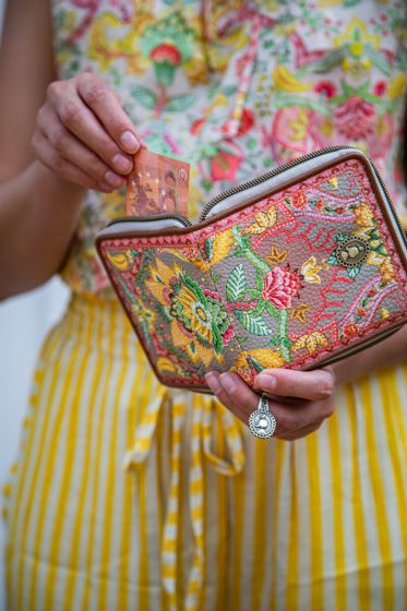 Cerchi un portafoglio elegante per l’uso quotidiano? Buone notizie! Ne abbiamo uno tanto bello quanto pratico. Questo portafoglio quadrato è decorato con una varietà unica di fantasiosi fiori e foglie di chintz. I rami di fiori disposti simmetricamente con fiori riccamente decorati conferiscono al design un tocco lussuoso. Il portafoglio ha diversi scomparti per riporre in sicurezza tutte le tue carte.