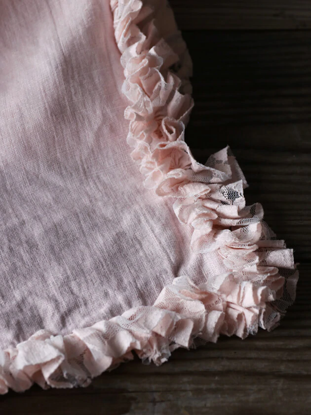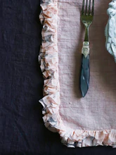 In puro lino, con una delicata ruches di pizzo color avorio, questa tovaglietta americana si sposa con gli ambienti rustici e country, ma anche con il design più moderno.