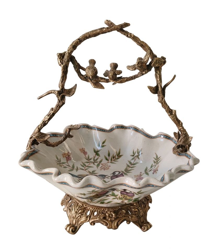 CESTINO CON PIEDI E MANICO IN BRONZO CON UCCELLINI, in Sheffield di Royal Family