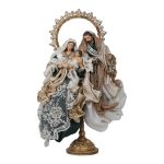 Sacra Famiglia su Alzatina in Resina Abiti pregiati color Verde ,avorio e Doratodi Fiori di Lena